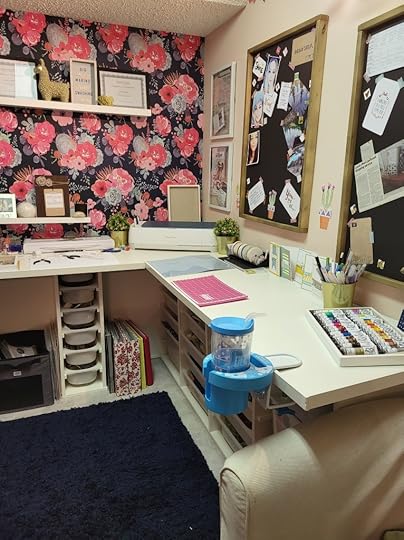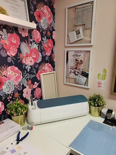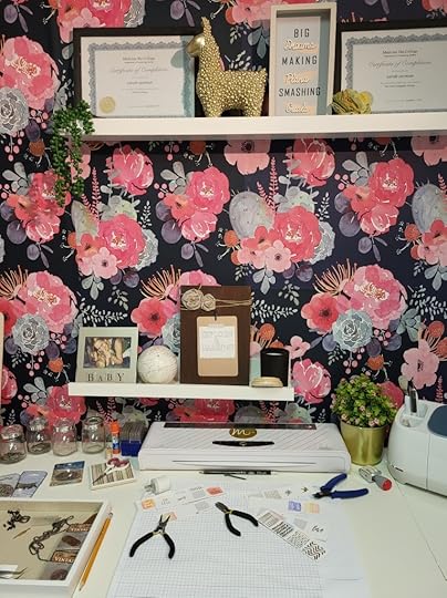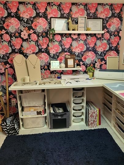 When I started this project I knew I wanted something feminine which is a change for me, a bold accent wall which again is something different for me and designated areas throughout the room for each specific task I like to do creatively.