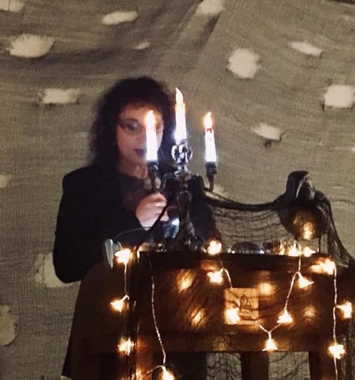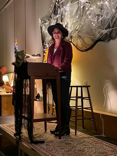 As I think I've said before, Halloween is not my favorite time of year. I love October, with its colors and its chill, dark evenings, and I love fall. But I hate to be scared, and I can't read horror or see horror films, because they STAY WITH ME FOREVER. Which doesn't mean I don't love a cool, atmospheric Gothic tale now and again, and it's always fun to see what lurks in other authors' twisted minds.So yesterday, I participated in as BARN's (Bainbridge Artisan Resource Network) fun Dark and Stormy event, where I, along with 5 other authors (Kevin O'Brien, Ramon Isao, Bruce Barcott, Paul Hanson and Elizabeth George) read short pieces that started with the prompt "It was a dark and stormy night." There were costumes, food, wine (included mulled! wine), and some very spooky decorations.Here are a couple of pictures from the event (thank you, Rayne Lacko and Anne Clermont and Lynn Brunnell!), and, as a special treat, I've included a link to the short story I read, so you can see what I've been up to lately (and yes, yes, I am working hard on a novel--hopefully I'll be able to give you details on that soon).Me and Suzanne Selfors: