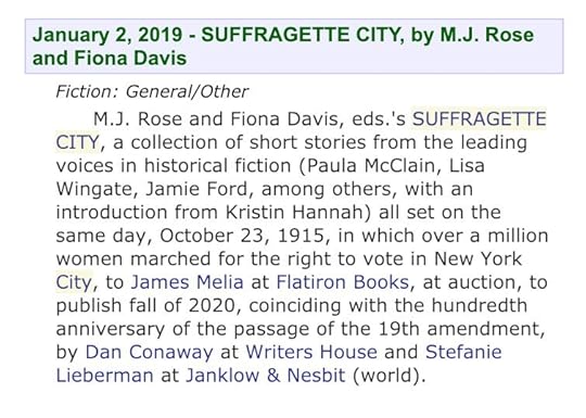 The full list of authors involved is: Paula McClain, Katherine Chen, Alyson Richman, Lisa Wingate, Dolen Perkins-Valdez, Chris Bohjalian, Jamie Ford, Christina Baker Kline, Steve Berry, Megan Chance, Kristin Hannah ( intro), Fiona Davis, and M.J. Rose.I could not be more pleased to be part of this project!
