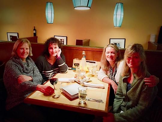What do authors do when there's business to discuss? We go out to dinner, of course. Here I am, with Suzanne Droppert, the owner ofLiberty Bay Booksin Poulsbo (want an autographed book? This is the place to order it), wonderful young adult and middle-grade authorSuzanne Selfors, and of course,Kristin Hannah. It's truly amazing how much can be accomplished with the help of tapas and wine.