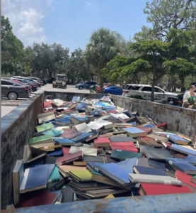 A report in the Sarasota Herald-Tribune was more damning, claiming a dumpster in the library parking lot overflowed with books and collections, and a video captured in the afternoon showed a vehicle driving away with the books before students were notified. In the past, students were given an opportunity to purchase books that were leaving the college’s library collection. New College spokesperson Nathan March referenced Florida Statute 273 as the reason books could not be donated or sold. However, FS 273 states that New College could dispose of state-funded personal property by “selling or transferring property to any other governmental entity… private nonprofit agency… (and) through a sale open to the public.”(herald-tribune.com)