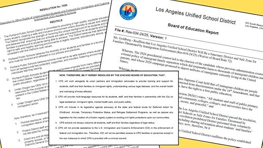 LA is not alone. “Teachers in the Chicago schools and the nation’s two big teachers unions acting jointly in California are hatching plans to protect their students, and specifically their undocumented students, from Donald Trump-ordered raids on schools.” (www.peoplesworld.org) Suburban school districts in the Chicago area, which the new border czar has said will be one of the first targets, are reaching out to families, trying to ease fears. (abc7chicago) My local political activism group is meeting with school leaders in our towns, providing resources and information to ensure that they provide students with all the legal protections to which they are entitled.