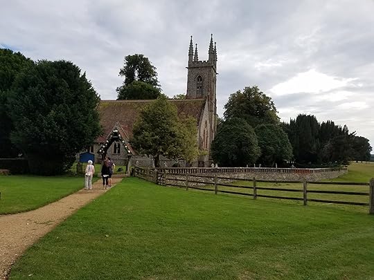 The Austen women would walk a short distance down the lane from Chawton Cottage to St. Nicholas church. Edward’s Great House was just up the hill behind the church. Edward had the church rebuilt beginning in 1838, so it looks different than when Jane attended., died in 1812, his time in Hampshire increased still more. This shift created a hub for the Austen family in Chawton. Whenever Edward and his family were in residence, the other Austen siblings would visit regularly, while the Austen sisters would walk to the Great House almost daily. (Frank and his family lived there for a while when he was without a sea command.) The Austen women could walk south down the lane from their cottage in less than ten minutes, either to the church or the Great House, just up the hill behind the church.