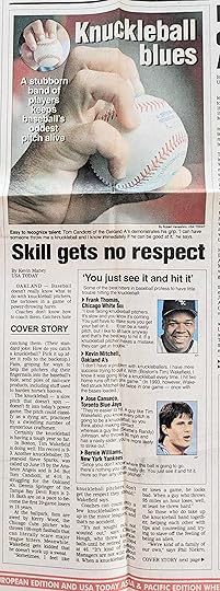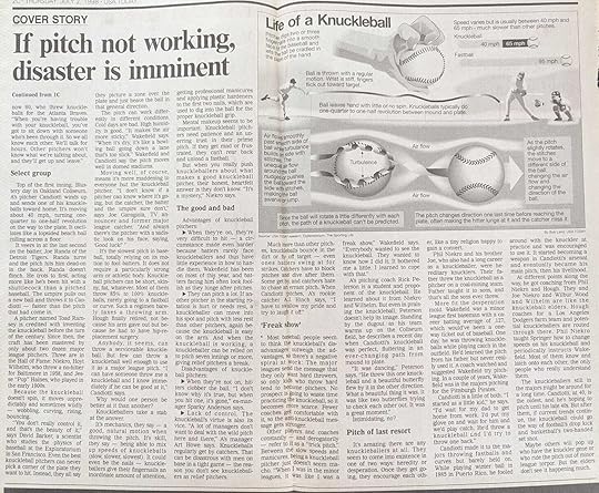 In my long journalism career, I only wrote one pure sports story – about baseball’s dwindling batch of knuckleball practitioners. It appeared in USA Today on July 2, 1998, under the headline, “Knuckleball blues.”