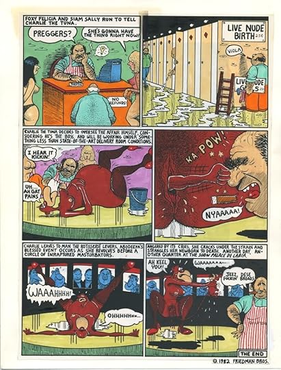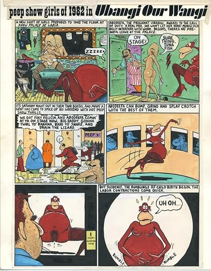 Depraved, pathological? Lighten up, Charlie, don’t get all academic. Overt racist caricature, you say? J’accuse! Go ahead, if that makes your day. You might consider that brother Drew doesn’t make white people look too pretty, either. But I witnessed poor womenfolk at Show World revolving on platforms in their ninth month of pregnancy. My usually taboo–defying editor, Jeffrey Goodman, at High Society’s line of mens mags, balked at running this comic strip. And so this Times Square sitcom ended after two episodes. I hereby present “Ubangi Our Wangi” for the first time ever.