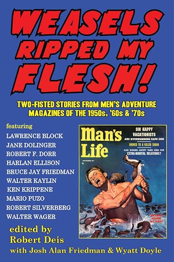 And so, six decades, countless man hours and hundreds of weasels later, we proudly present Weasels Ripped My Flesh! Two-Fisted Stories From Men's Adventure Magazines of the 1950s, '60s and '70s . Collecting 22 stories by master scribes from three decades of men's adventure writing — most of which haven't seen print since their original publication — Weasels Ripped My Flesh! supplements them with interviews, commentary and reminiscences by the original authors, plus iconic illustrations and wacky magazine advertising from the mags.