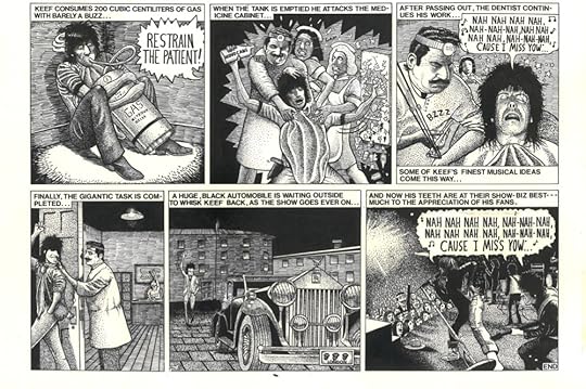 In recognition of the worldwide celebration of The Rolling Stones 50th Anniversary—an occasion almost too good to be true—I present this primitive comic strip, which ran in High Times, Feb. 1981. The World’s Greatest Band contains two geniuses, and such grand, fantastical characters, that we are blessed to still have them on earth. But, being Englishmen, there once was this problem with their teeth. I sometimes wondered why The Rolling Stones didn’t have a cartoon series on Saturday morning television, like The Beatles. Perhaps it could have gone down like this: