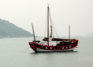 Water Ghosts began, not with a plot or a character, but with a setting – an old junk moored at the Ala Wai Small Boat Harbor on Oahu. The first time I saw her was after Bob and I had moored, Tahitian style, on Ala Wai’s 800 Row, not long after sailing 2500 nautical miles from Bora Bora. Walking through the harbor to the Hawaii Yacht Club we passed Intrepid Dragon II, a few rows away. Her foredeck was crowded with crates, jerrycans and 50 gallon drums, covered with a blue plastic tarp. She looked more like a floating storage shed in need of a little varnish. But I was intrigued. Very intrigued.
