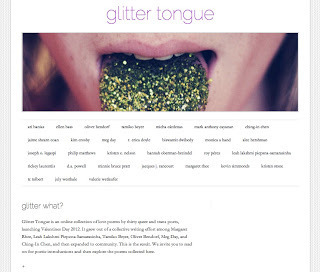 Just in time for Valentine's Day, GlitterTongue "is an online collection of love poems by thirty queer and trans poets," started by Margaret Rhee, Leah Lakshmi Piepzna-Samarasinha, Tamiko Beyer, Oliver Bendorf, Meg Day, and Ching-In Chen.