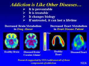 Simply put, addiction (SUDS) changes the brain and impairs the way it works. Just as cardiovascular disease damages the heart and changes its functioning.