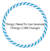 I can imagine standing in the blue hula hoop. I only have that much space to fit everything I need to have serenity for the day, and some examples include: