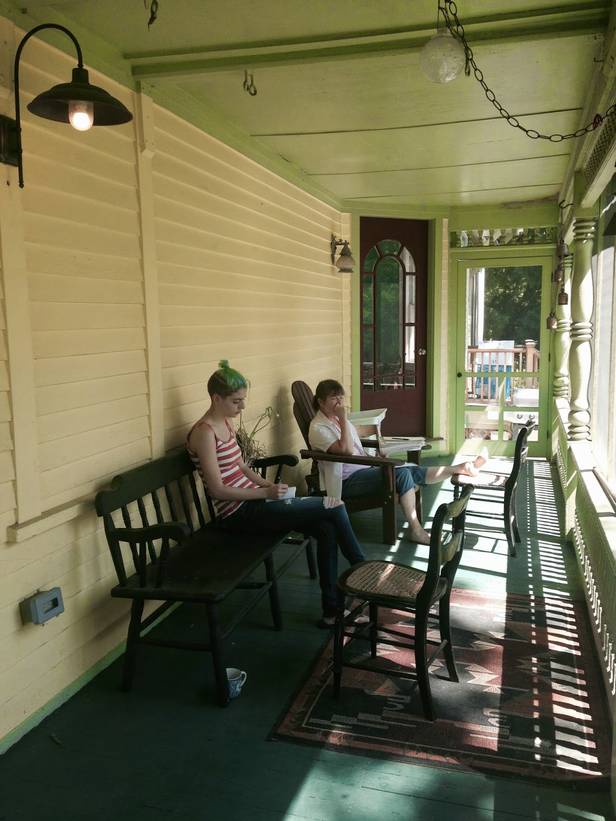 My aunt Elizabeth surprising us. She has never come to Falcon Ridge before. Oddly, my father and I had just been talking about how she wonderfully surprises us all the time by showing up unexpectedly.