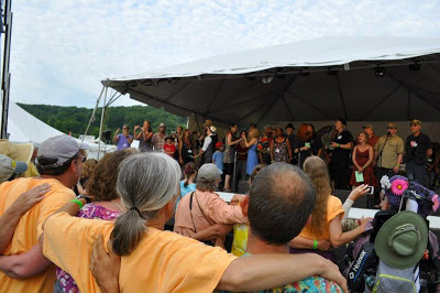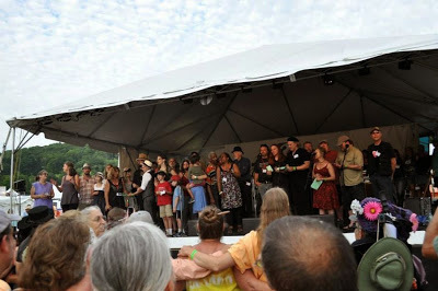 The Pete Seeger workshop on the workshop stage. Here's what was sung: