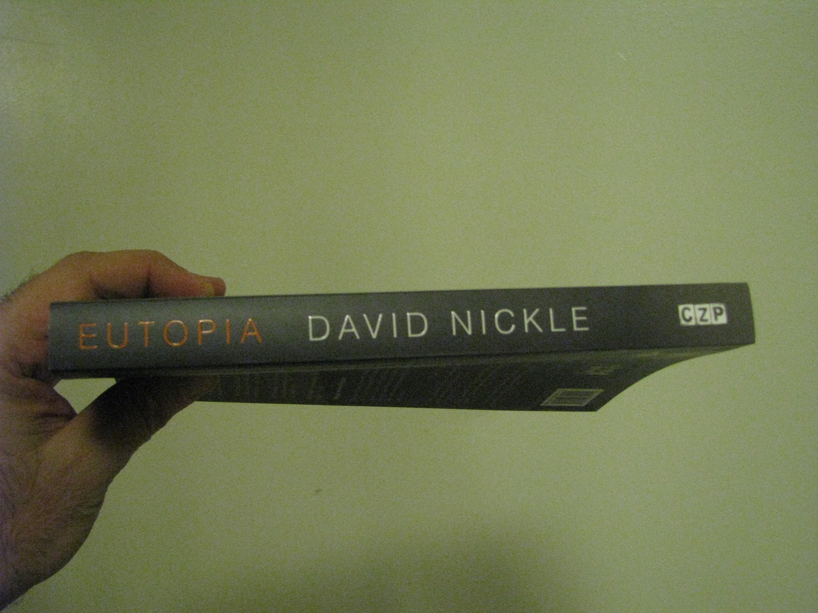 Perhaps the most indulgent post I've made about Eutopia so far, but not, I suspect, the most indulgent one I'll make: photos, of one of my author copies of my novel Eutopia. Brett got review copies back from the printer's last week, and set aside a few for the author. So just to prove it's real, and not just a figment of my optimism, here's a small photo gallery.