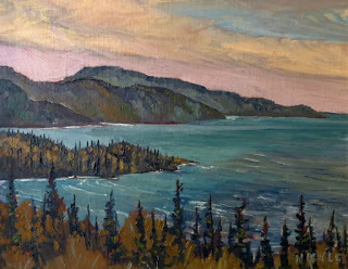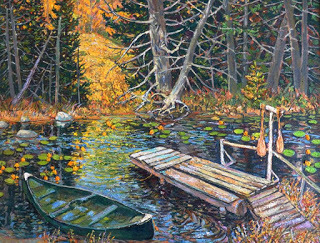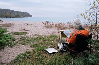By the time of his death, he was touted as one of the last of the en plein air painters. It was no wonder that he was: for decades in the Canadian art world--the decades that Dad was working in his prime--en plein air didn't get much respect. It was representational and illustrative... decorative and old-fashioned... apolitical, except maybe to the extent that it celebrated the natural world in the time of strip mining and urban sprawl. People did buy Dad's paintings--he was able to make a solid living at it--but they weren't celebrated; Jackson Pollock he was not.