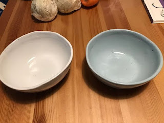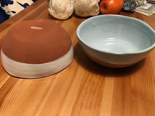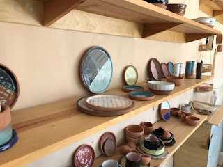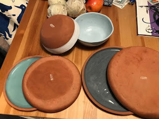 I tried making this kind of pottery myself but I couldn't--she glazes it at low temperatures (less durable but lovely). I don't have control over the kiln at the studio.