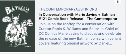 I wasn’t in Austin for SXSW last week, and I got out of town yesterday afternoon before it really kicked in, but my five days in town felt like the old days. Not that I was hopping from club to club or seeing music—in fact, I saw zero bands. But I did see friends. So many friends, friends from Austin and the Chronicle, friends from Ohio, friends from comics, one friend from my hometown of Alexandria, friends from bands, Daniel’s family, and they all saw me too, as I spoke on stage about Daniel Johnston’s artwork and our friendship, and how we ended up putting his Batman, Superman, and Orion on the cover to Batman #121.