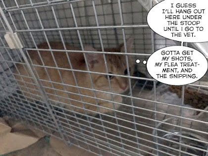 There were a lot of steps in this process! I was lucky he was so cooperative with the trap—I imagined I would catch one of the other cats (already TNRed), a skunk, any number of raccoons, or maybe a opossum. Fortunately, Bart decided to go along with me.