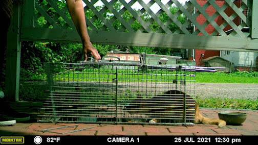 Now he has to spend another night in the trap while the anesthesia wears off, and I can release him tomorrow back into the convent yard.