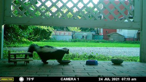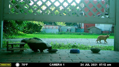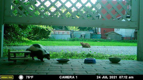 I was hoping for some photos of little orange cat Bart, so I can establish his routine, but instead I got to see a lot of this black cat with a white stripe of paint down its back.