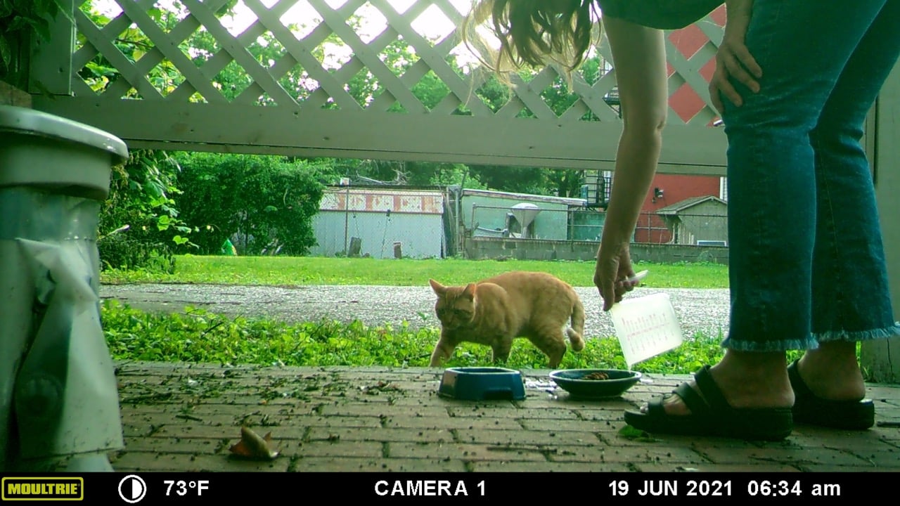 I went back to check on the cats ten minutes later, and to my surprise, this jerk was chowing down on their food!