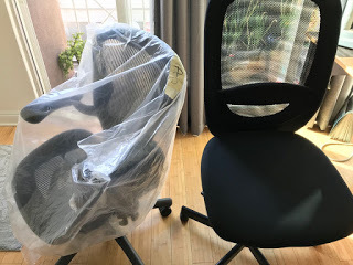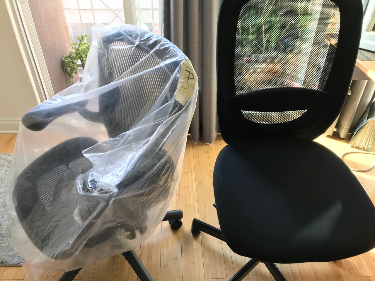 Now I have a used Aeron chair in Burbank as well as a used one in Jersey City. The NoHo ones to me looked clearly re-sprayed, which checks out for set pieces. And I am giving away my old IKEA chair on Buy Nothing, so I don't have to worry about hauling it to Goodwill.
