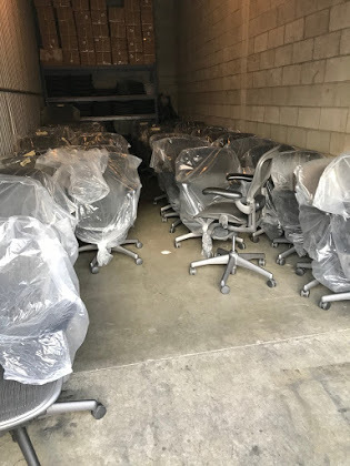 I pulled up to a unit that faced the driveway, where a masked guy named Junior let me try different used Aeron chairs.