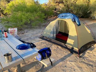 Here’s how the whole tent thing works for me when I’m traveling solo. It's a lot like when I used to travel with Turbo, just he liked doing the work part, which sure made it easier on me.