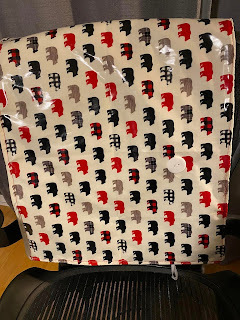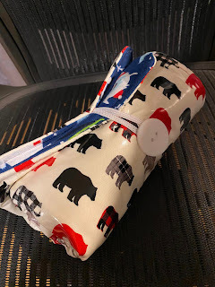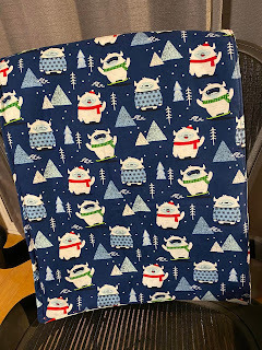 I made another baby mat for a colleague’s new baby. This colleague is a yeti-ist. A Bigfoot fan. The bears are just for California.
