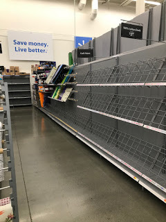 I was feeling pretty good about the future up until I left Lowe's and went to Walmart. The square mile of Burbank I roam around feels so easy. Vons doesn't always have what I'm looking for, but then it will a few days later. I'm a few blocks from Vons, from CVS, from carry-out restaurants, from the post office, FedEx and UPS Store for printing, and if I want to punish myself, I can go wait in line at Trader Joe's.