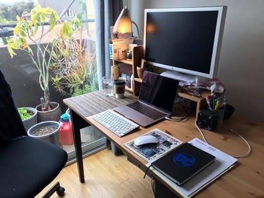Here's my new office for the work-from-home initiative. To be honest, my first instinct was to go to home-home as quickly as possible and ride this out in Jersey City. But I only have a mini-kitchen there and no freezer. I'm better equipped for quarantine here in Burbank.