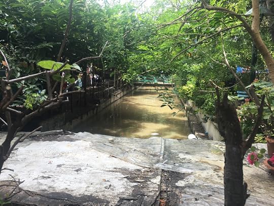 I went over in my zebra t-shirt to pay my respects. An old woman was at the shrine—I couldn't tell if she was homeless and slept nearby or if she was the caretaker. Maybe both. She looked at me in my zebra shirt taking photos of the zebra shrine and she howled with laughter. She called two men over, men who wear lazily sitting by a canal.