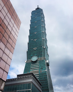 Once my laundry was done, I finally convinced myself to head out. I walked across Peace Park to the National Cultural and Creative Gift Center, then took the metro to Taipei 1010. That's a super-tall highrise, the tallest building in the world for a while, until Dubai took the title.