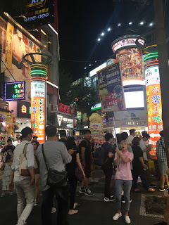 He was right, as it turned out. On landing, I was able to find the train from the airport to the central train station, and once there, I was eventually able to locate the metro in the labyrinth shopping center attached to the station. It was only one stop to the hotel at Ximen metro, which I'd have walked if I weren't dragging luggage. But I became dizzy and nearly passed out as I headed to the escalator out of the metro. Dehydration from last night's food poisoning, I thought, but that's just a guess. Dr. Marie is actually no expert on these things.The staff at CityInn Hotel Plus was delightful, and stashed my bag so I could head off to be a tourist until check-in time. Ximen has a pedestrianized zone which is full of young people (and tourists too but mostly young tourists), so I wove through them and found an all-day breakfast place I'd spotted online. I wanted to gently ease my innards back to the notion of eating after the previous night's drama.