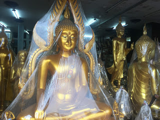 I'd been near the Giant Swing yesterday, asking around for places that might sell ceramic zebras. As you may recall, I've been on a hunt for ceramic Thai zebras since 2011, since I first noticed them at spirit houses.The receptionist at my guesthouse had sent me to the stores by the Giant Swing. All I found there were huge golden Buddhas, but a guy told me I could find my zebras at Bang Bua Thong. I looked this up and found I could get there by a combination of metro and bus or taxi, and I'd do even better if I left from Chatuchak Market after my regular pilgrimage.