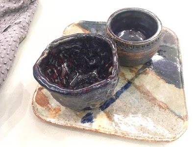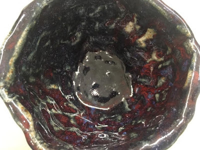 I didn't think the plate would make it through firing because it had a little crack in it, so I just tested out glazes on it. But it looks good and the crack isn't visible.