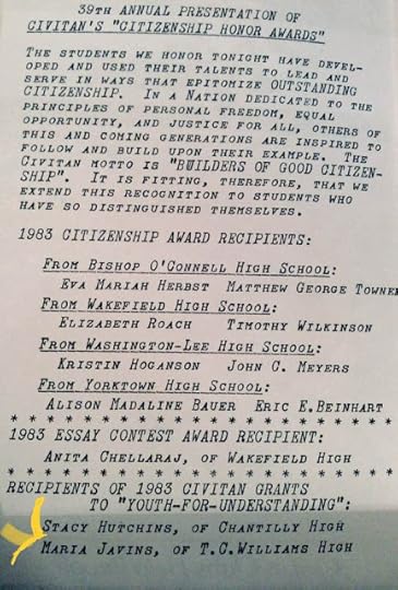 The time Marie got a scholarship to travel abroad from the Arlington Civitan club, 1983. They got her name wrong but she got to go to Finland!