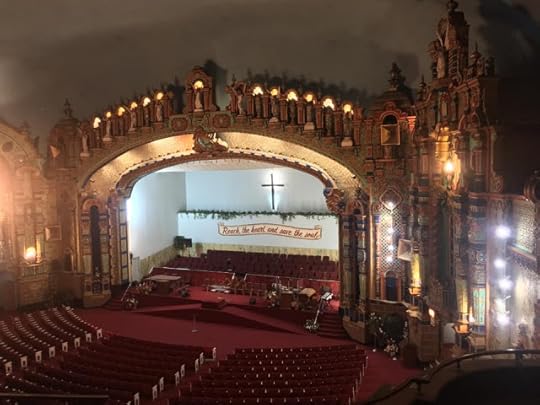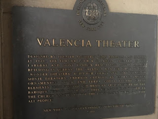 I love checking out of movie palaces, and today I had the opportunity to see one which is seldom open to non-churchgoers.The Valencia is one of the five wonder theaters Loew's built around NYC in 1929-30. The one I've been to the most is, of course, in Jersey City at Journal Square. I've been to that one more times than I can count since it's home to ongoing movie screen series and the occasional band. And I went to the Manhattan one once when Bob Dylan played there. I haven't been to the newly renovated Brooklyn one yet, and god knows when I'll get a chance to see the Bronx one, but today I saw the Queens one.