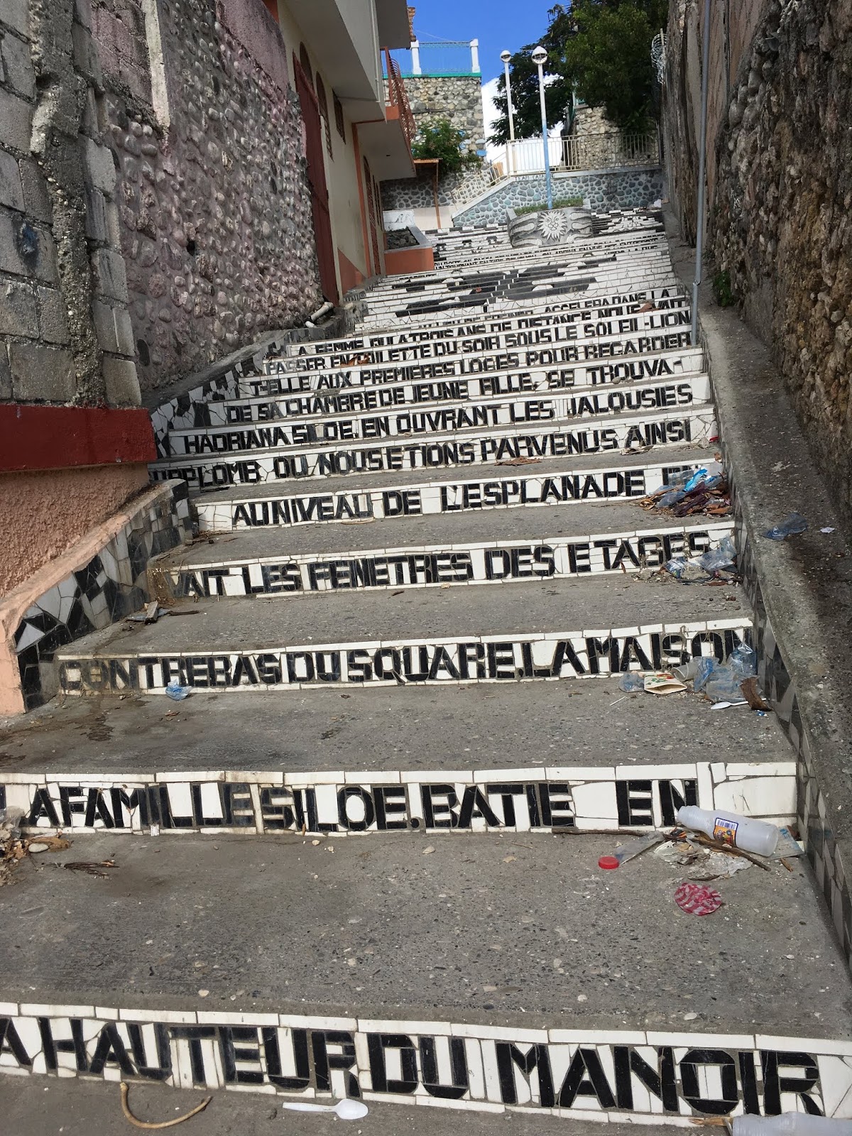 I stopped at Colin's Hotel for lunch, because it was 1) open and 2) had food. After I finished eating, I went to the cashier and asked "Where are these?" I showed her a photo of the Préfète Duffaut stairs. She said "Above Sogebank."