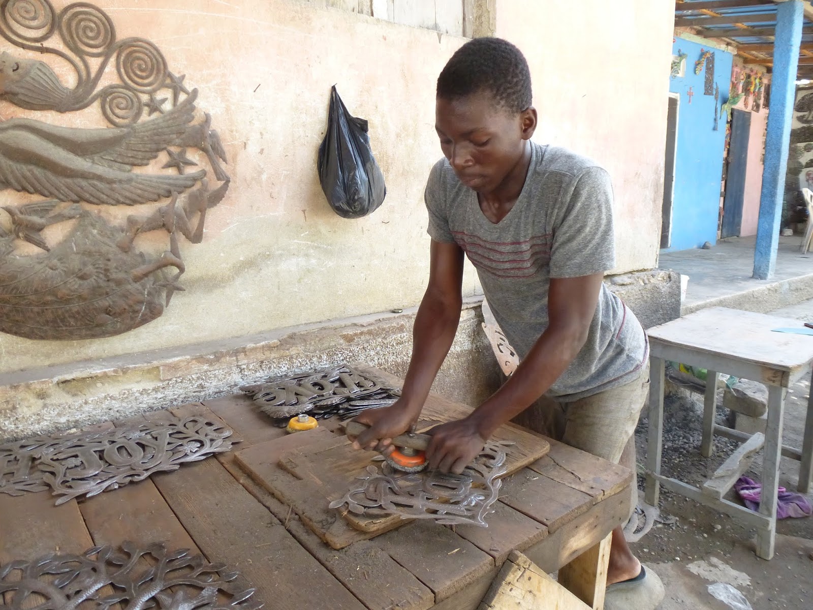 Our first stop was a bakery in Petionville. We then headed to Croix-de-Bouquets, hometown of Wyclef Jean, though that is not why we went there. We were going to Croix-de-Bouquets to see the small village of Noailles, where the entire town is dedicated to turning iron into artwork.