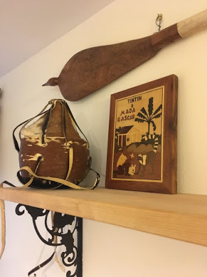Goatskin lunchbox (Ethiopia, 2001), ceremonial paddle (French Polynesia, 2011), Tintin folk art (Madagascar, 2011)
