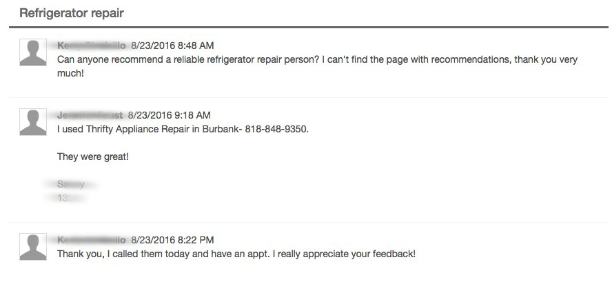 I was less than thrilled. I went onto the HOA message board to search for appliance repair recommendations.