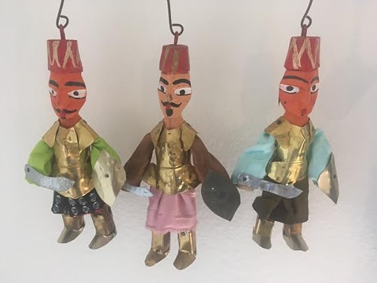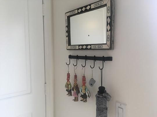 I bought a little hanging rack and set up these souvenirs I bought in Tunisia. They look great, and they'll keep away burglars, no doubt!
