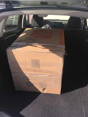 Because the entrance to my apartment is under my house's stoop, I had limited space to get the box out the door. And the rental car was a sedan--the box wouldn't fit.