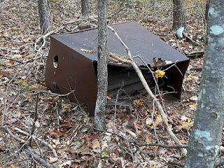 To the right, the land was all posted, to the left were the homes. My phone app eventually informed me I’d arrived, that the quarry was over to the right. I saw nothing by leaves and trees, and a wild clearing beyond. I parked the Hyundai as far off the road as I could and cautiously passed the “no trespassing” signs, looking for clues.