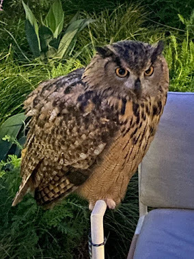 Remember the falconer at the office last month, the one whose job it is to drop by and scare off pigeons?