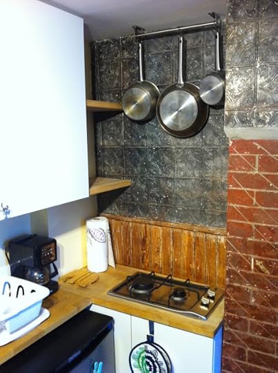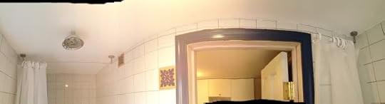 The last photo shows the Ikea wire BBF strung up in the wet room, to keep the shower from dousing the bathroom door and toilet every time it's used. That seems like a reasonable metaphor for life. Try to keep the spray from destroying everything around it.