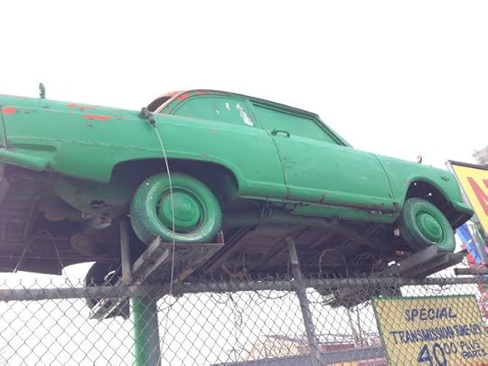 I'm sure this is where AAA took my then-BF Rick's Buick or whatever it was in 1988 when the starter clonked out while he was staying with me on 5th Street in JC. Maybe it wasn't a Buick. It was a classic 70s car, blue. I remember this decor, as it's memorable, and I remember it being in a rough part of town, which I guess to my 22-year-old eyes, Garfield would've been at the time. But I thought the garage was called Ray's. This is definitely not Ray's.