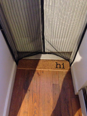 There were no fleas available at the flea market, but we did stumble over a guy selling doormats. I bought two, one little one for my Jersey City back door (that's a magnetic screen you see across the door), and one full-size for my Hollywood studio.