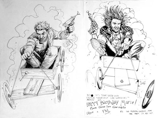 Steve laughed--he was generous with his laughs. We chatted a bit, and he told me when he was drawing the last Sixpack and Dogwelder cover. He'd created Dogwelder, I bet late one night in a bar with Garth.